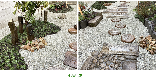 2021年現在、コロナで自宅で過ごす時間が増え、庭の空きスペースを見直される方のご相談や、ガーデニングとして有効活用したい、というご依頼が増えてきました。裏庭等の空きスペースを改めて整えさせていただき、見た目もすっきりと和風調へ変更させていただきました。ご希望の砂利の種類や石の大きさ、また、植えたい木や苔を張りたい、については日光の当たり具合、土壌によってございますが、お気軽にご相談いただければお応えさせていただきます。